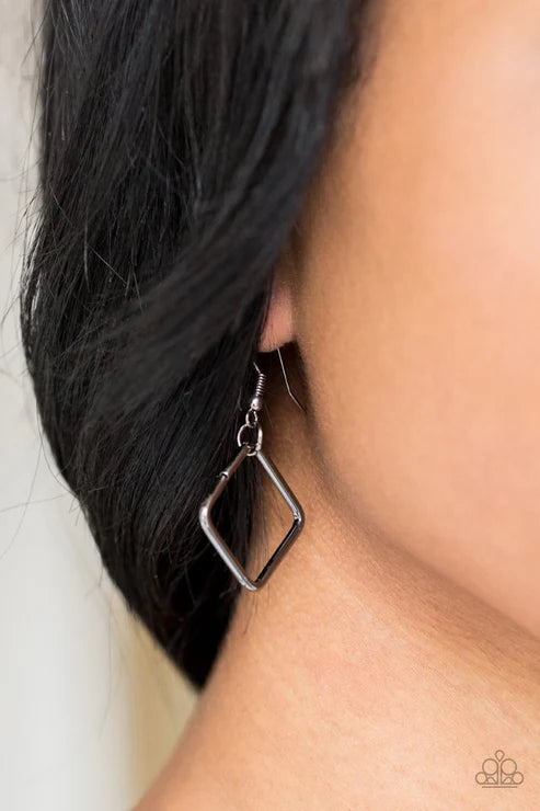 Varying in size, airy gunmetal square silhouettes link across the chest for an edgy look. Features an adjustable clasp closure.